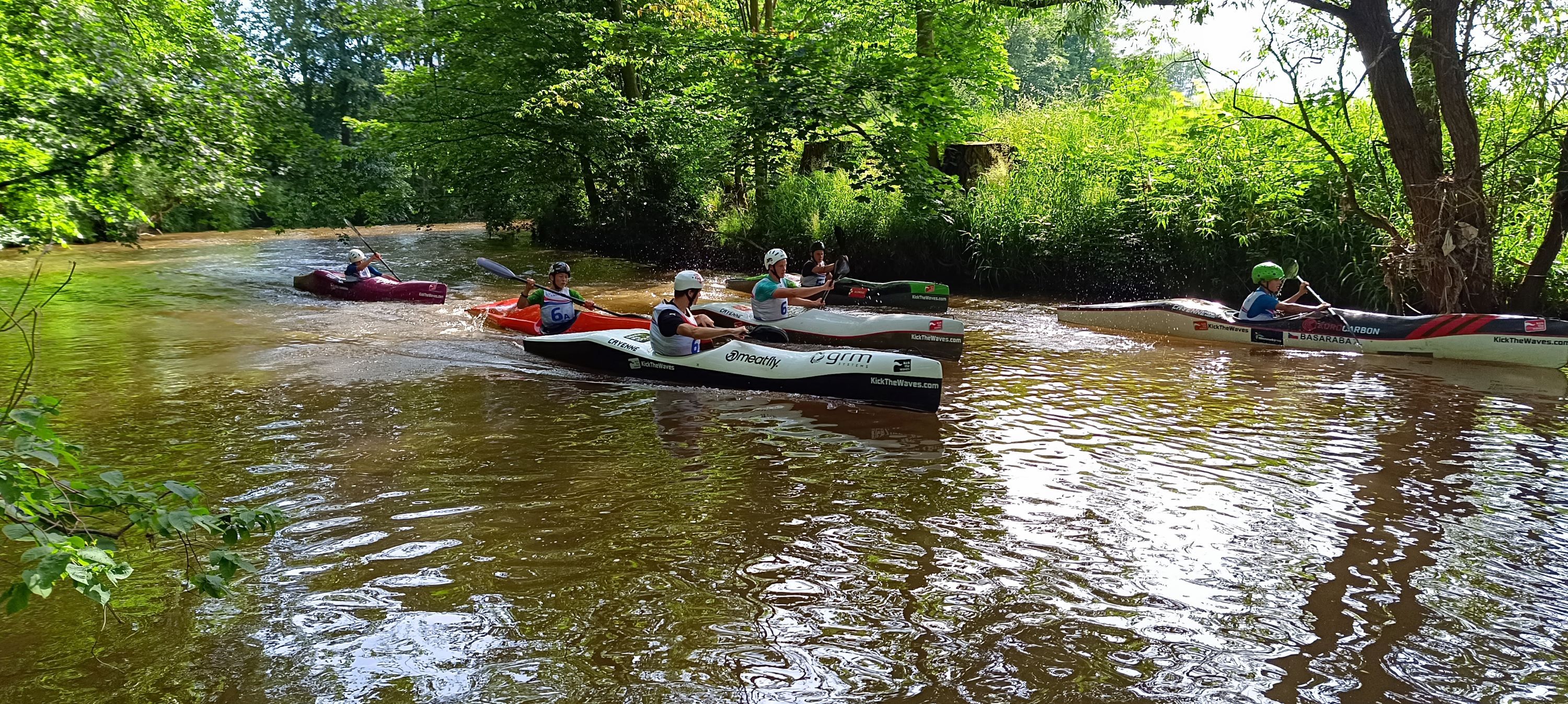 Mistrovství České republiky žáků a dorostenců ve sjezdu se konalo ve Dvoře Králové nad Labem. Trať pro nás byla velkou neznámou, protože jsme zde nikdo ještě nezávodili. A i když jsme v pátek přijeli ve večerních hodinách, šlo se na trénink seznámit s místním vodním terénem. Řeka zde tvoří velké množství zatáček, ve kterých až na výjimky nejsou mělčiny a umožňuje tak projíždění vnitřními oblouky. Pro zpestření jsou na začátku dva ostrůvky a před cílem zkratka v podobě tunelu z větví.