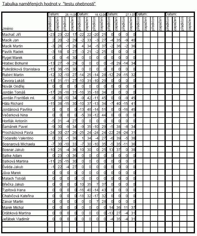 Dnes Šaman zveřejnil nejnovější měření účastníků kompenzačního cvičení, které se provádí v Dolních Kounicích.